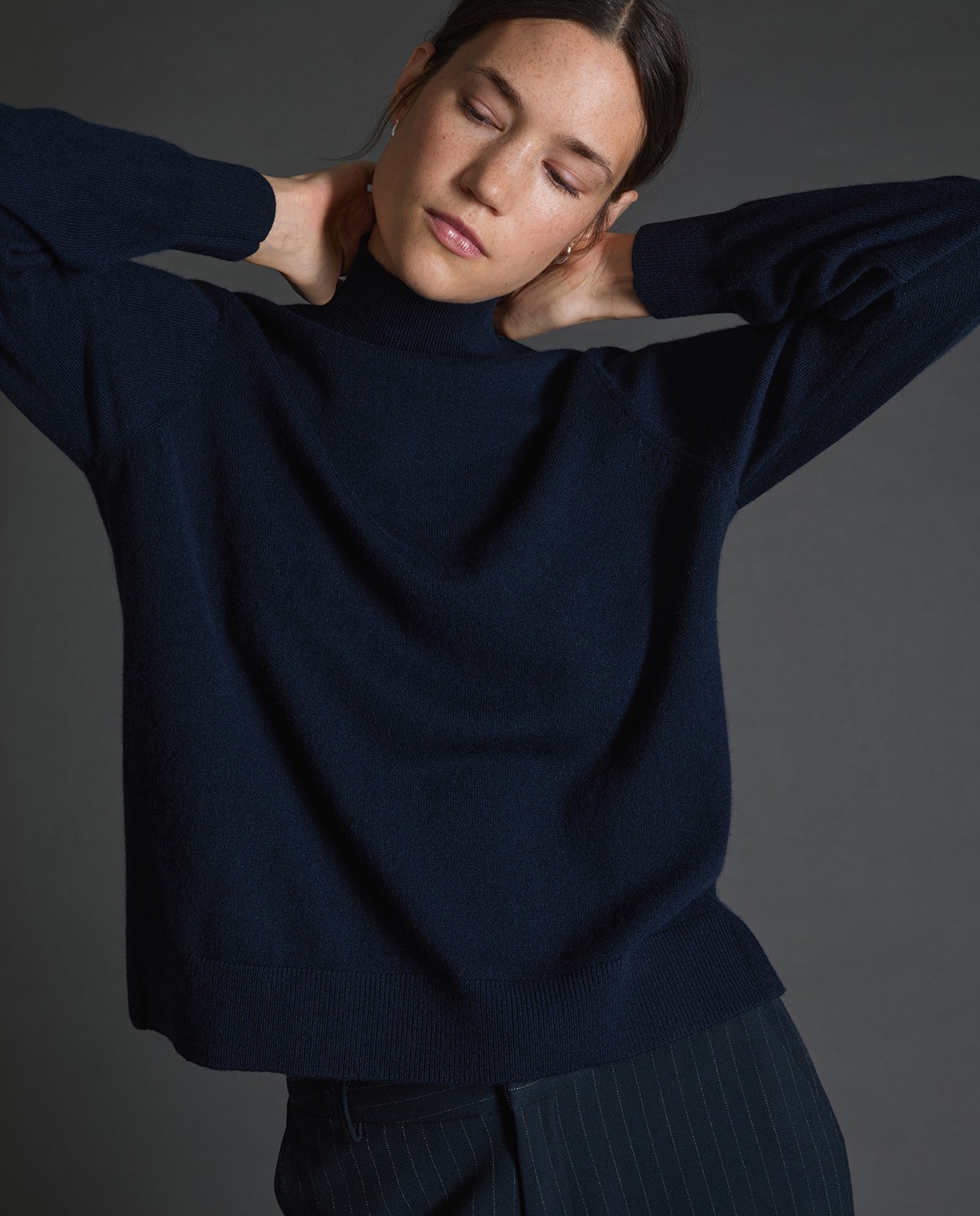 Jersey cashmere cuello perkins azul oscuro mujer | Yerse