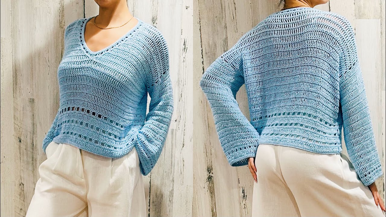 🩵JERSEY DE VERANO CON CUELLO V A CROCHET CROCHET V NECK SUMMER TOP || TUTORIAL ||
