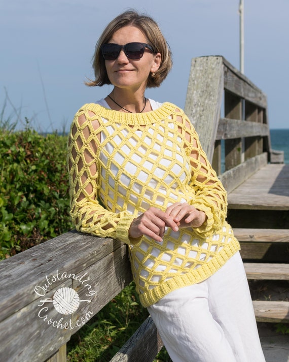 PATRÓN de suéter de crochet para mujer Top, jersey, jersey de malla de red de verano Sunny Seine con hombros descubiertos Pequeño a XL PDF Etsy España