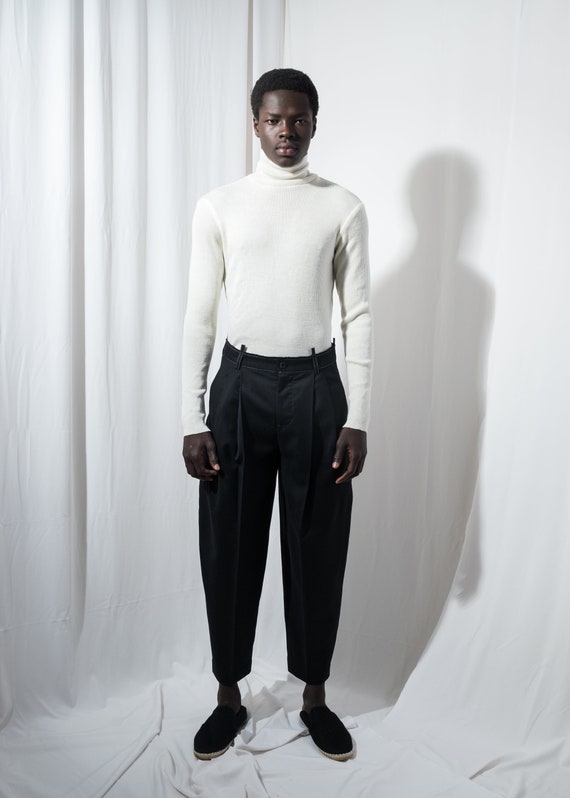 Suéter de cuello alto acanalado blanco para hombre Ropa minimalista de corte entallado Etsy España