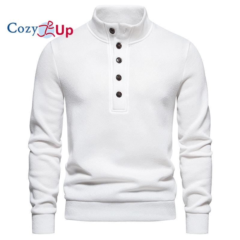 Cozy Up Suéter blanco de cuello alto con botones para hombre, suéter de punto de manga larga para otoño e invierno, camisa informal suave y ligera para hombre comprar a buen precio —