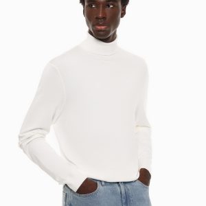 Suéter blanco de cuello redondo y jersey trenzado para hombre