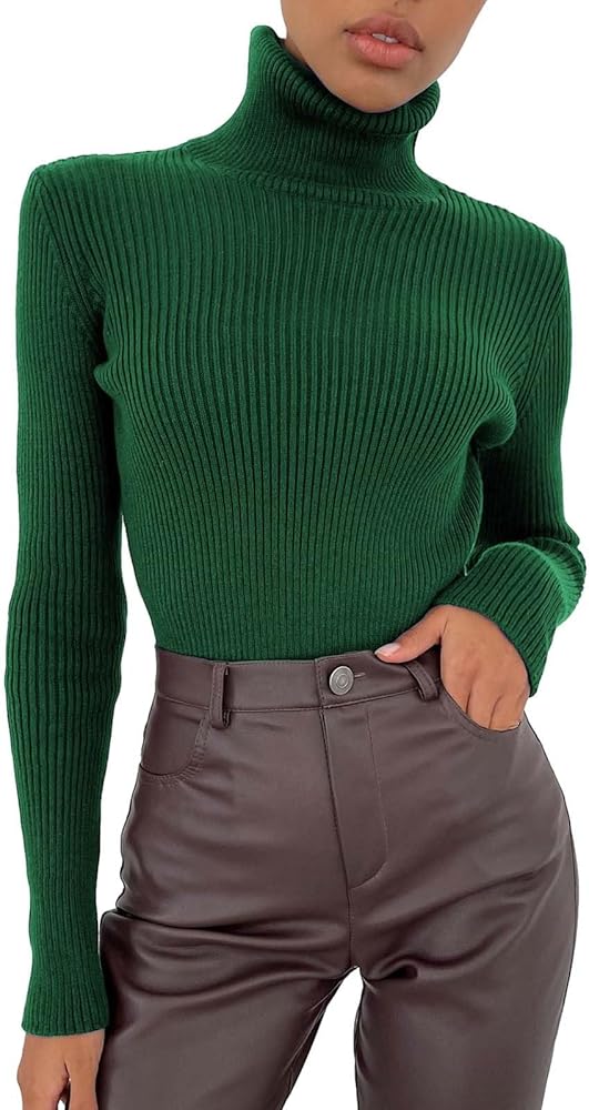 BOTCAM Camiseta de cuello alto para mujer, corte ajustado, cuello de tortuga, jersey básico de cuello alto, manga larga, jersey que realza la figura, …