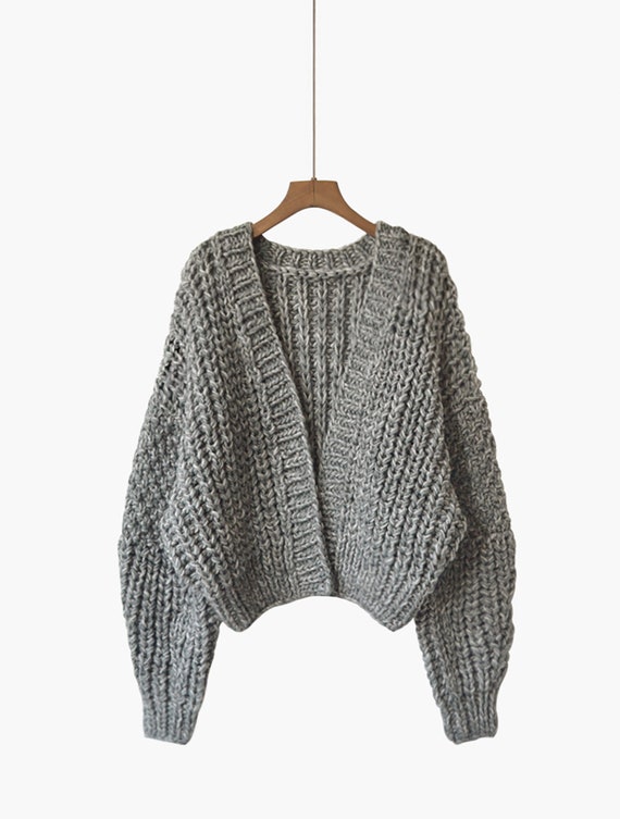 Suéter cárdigan de mujer tejido a mano cárdigan corto gris Etsy España
