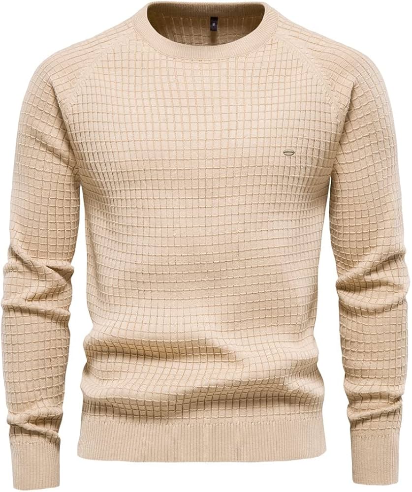 Suéter Casual de Los Hombres Suéter de algodón de manga larga de otoño e invierno for hombre, suéter a cuadros de fondo de color sólido for hombre …