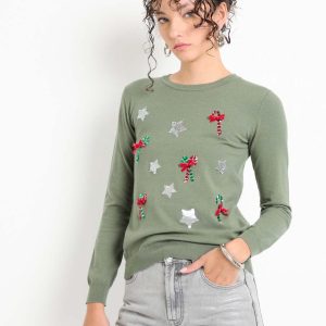 Jersey de Navidad para Mujer Santa y Rudolph Sonrientes