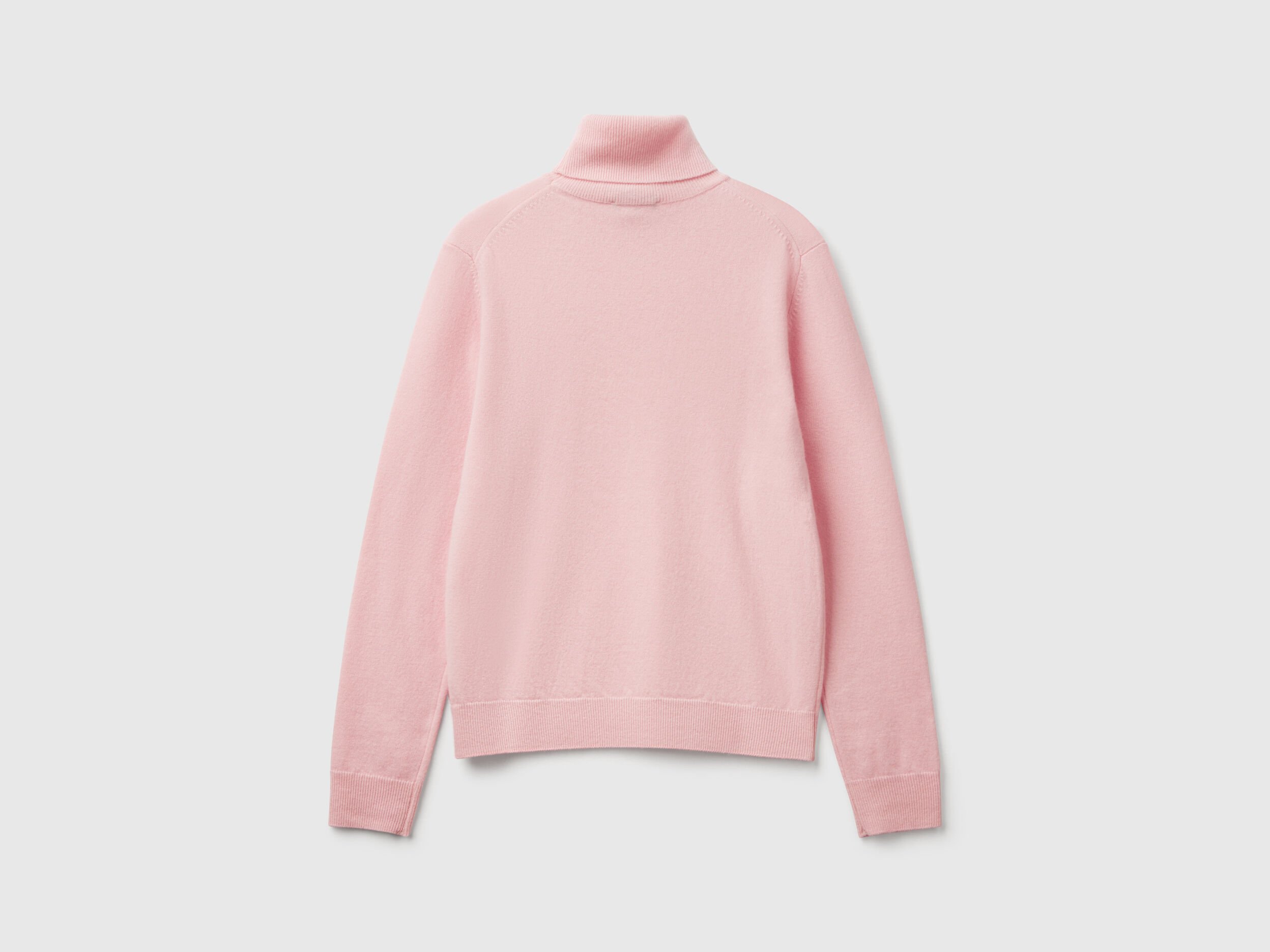 Suéter de cuello alto rosa empolvado en pura lana merino