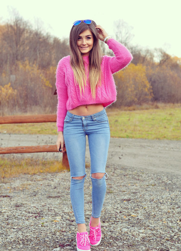 Outfit Sueter Para Invierno Outfit Sueter Rosa Pink Suéter De Punto Para Mujer Color Rosa