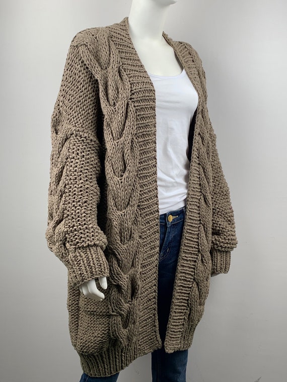 Suéter de mujer de gran tamaño tejido a mano, grueso y holgado, de algodón ecológico, cárdigan largo de punto cable Etsy España